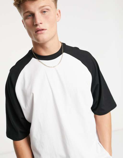 ASOS DESIGN oversized raglan t shirt in white with contrast black sleeves