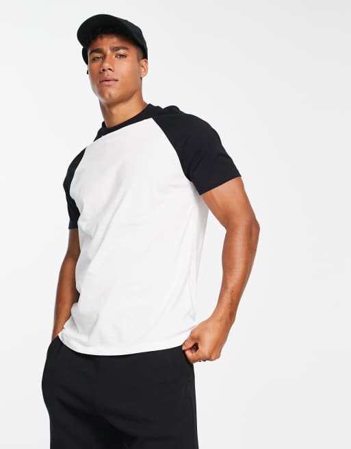 ASOS DESIGN raglan T shirt in white with black sleeves