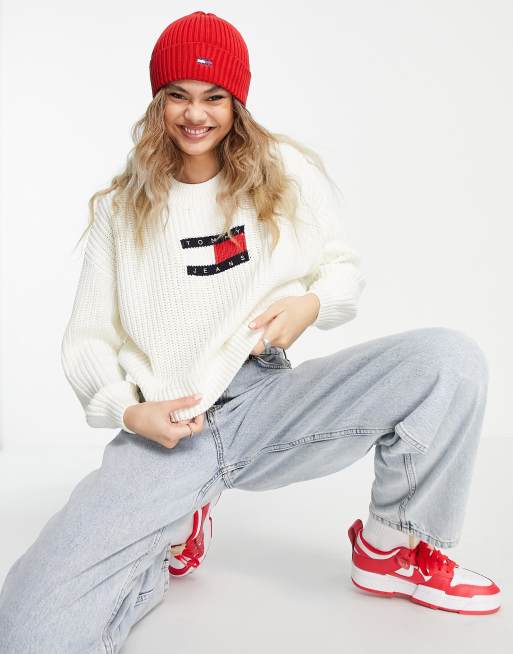 White tommy jeans jumper clearance, Tommy Jeans Boxy Graphic Jumper White XS clearance