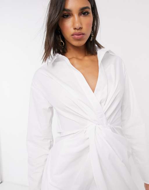 White twist shirt dress clearance, Twisted Waist Buttoned Shirt Dress in White clearance