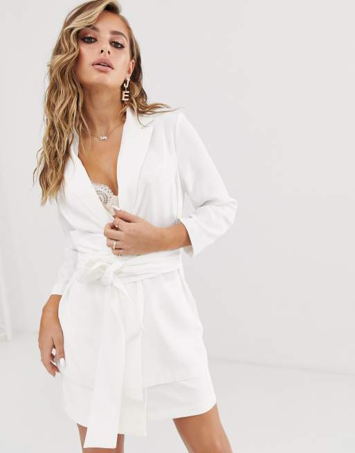 Amalie The Label Lotte Linen Blend Tie Waist Wrap Blazer Dress