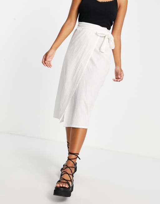 ASOS DESIGN wrap midaxi skirt with wrap around tie detail in white