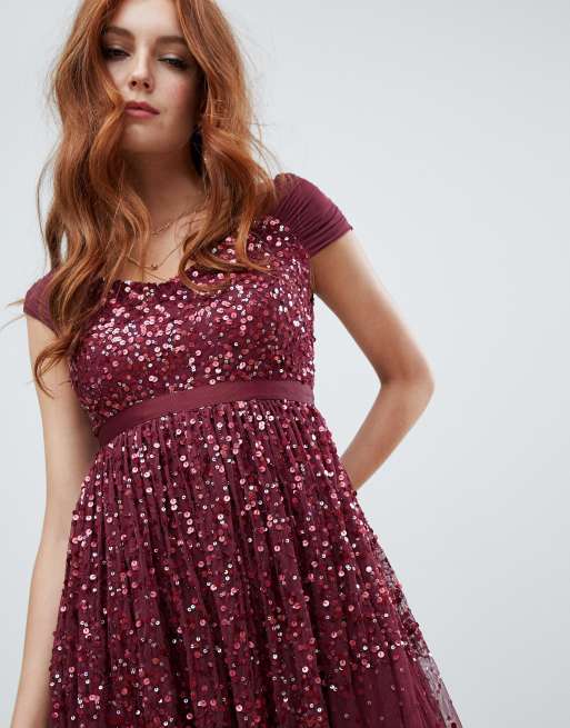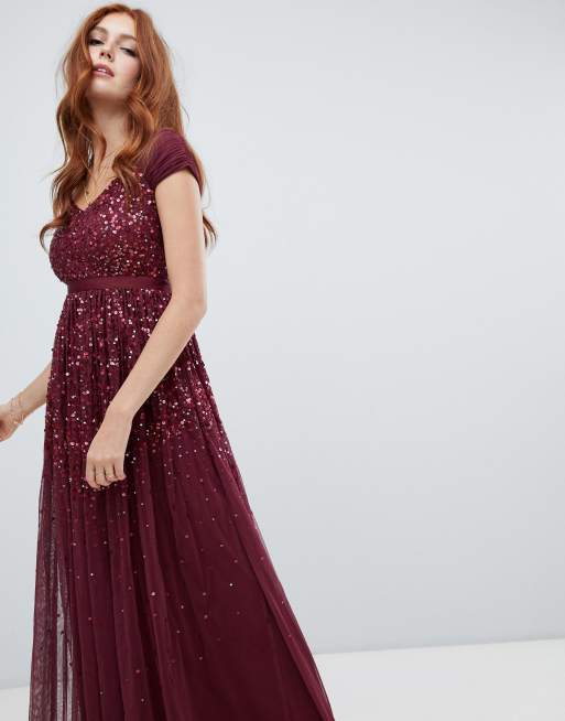 Amelia rose embellished ombre sequin maxi dress with cami strap in berry clearance