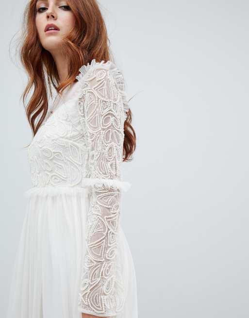 Amelia Rose embellished long sleeve dress in ivory ASOS