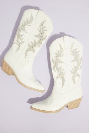 Women s Rhinestone Cowboy Boots White Wedding I Do Western Wear