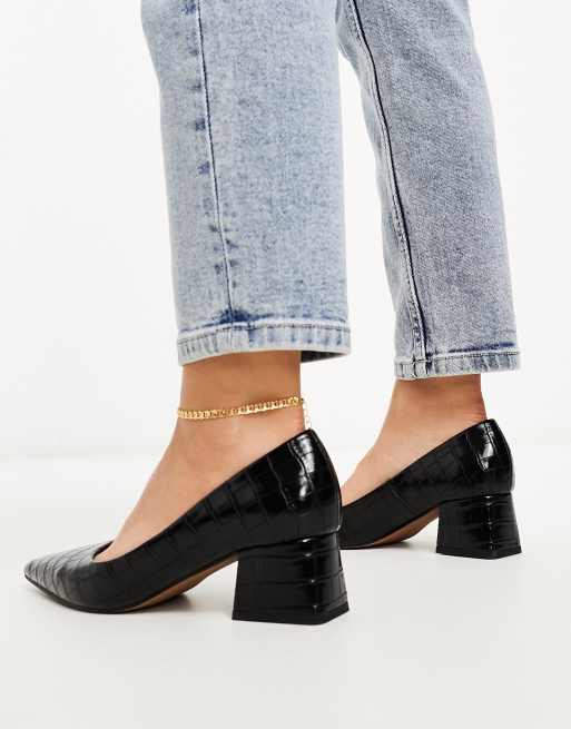 ASOS DESIGN Wide Fit Saint block mid heeled shoes in black ASOS