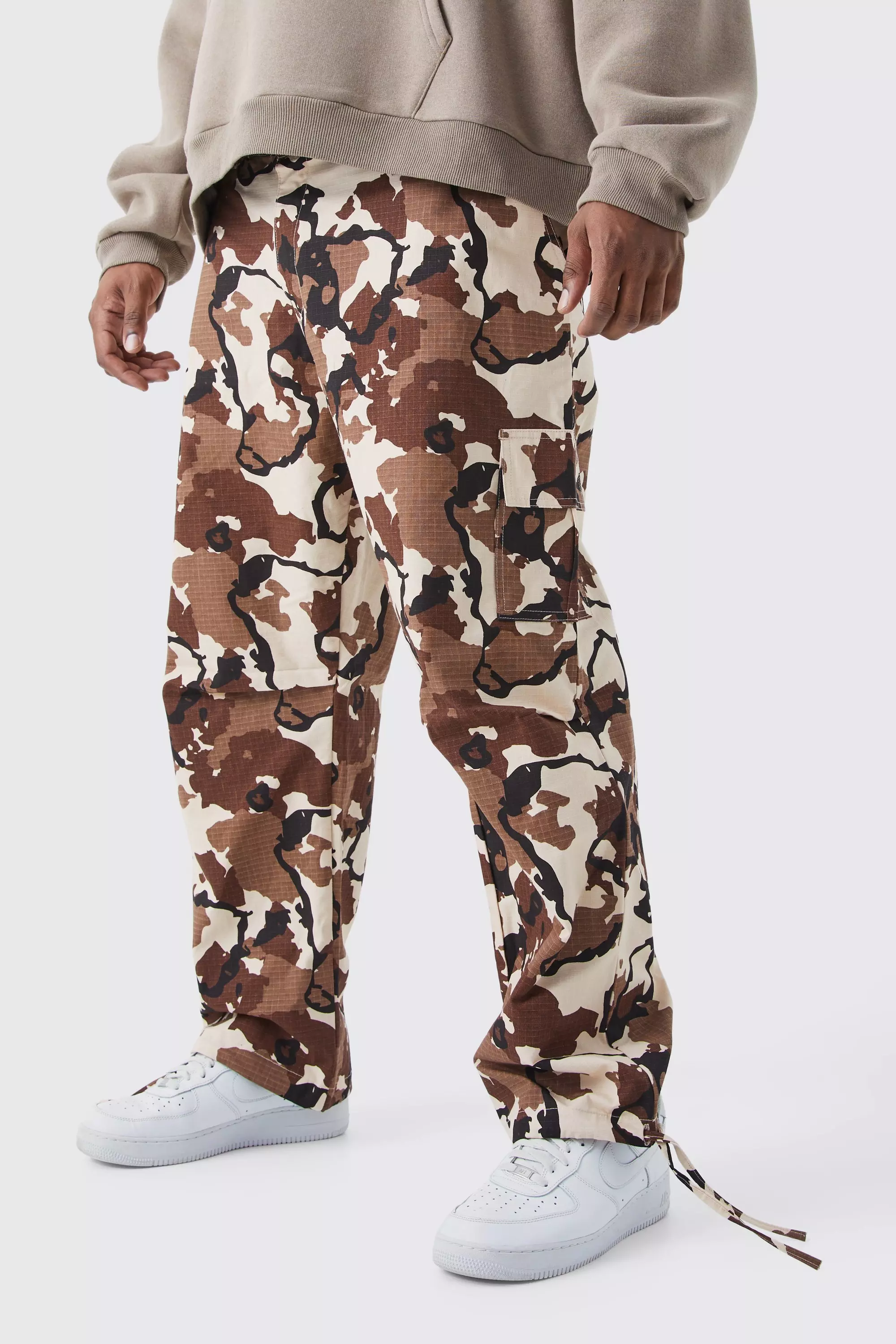Plus Fixed Waistband Ripstop Straight Leg Camo Pants boohooMAN USA