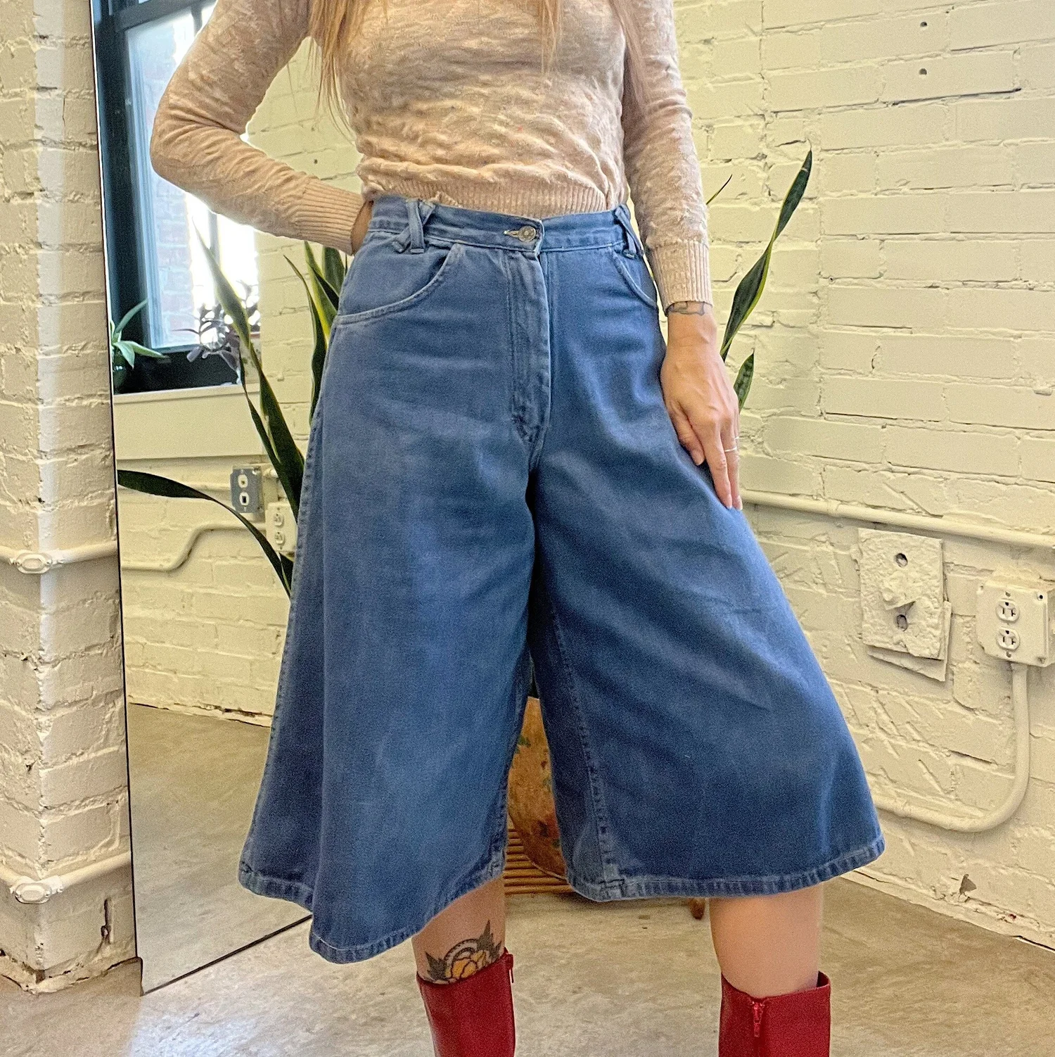- wide leg denim culottes