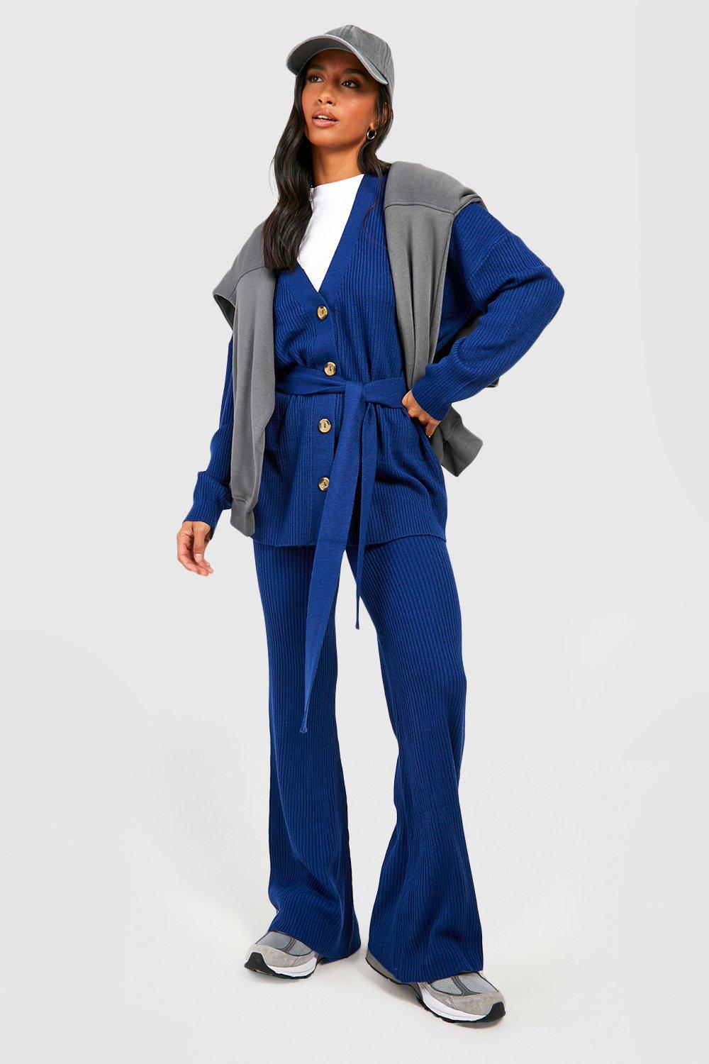 Petite Knitted Wrap Cardigan Wide Leg Pants Two Piece boohoo
