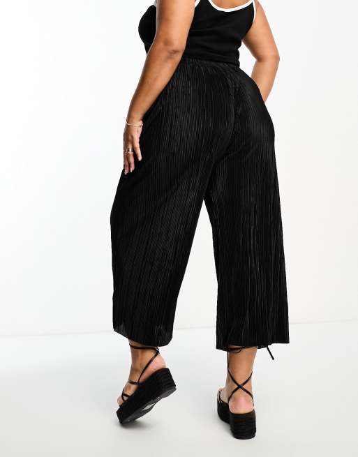 ASOS DESIGN Curve plisse wide leg pant culottes in black