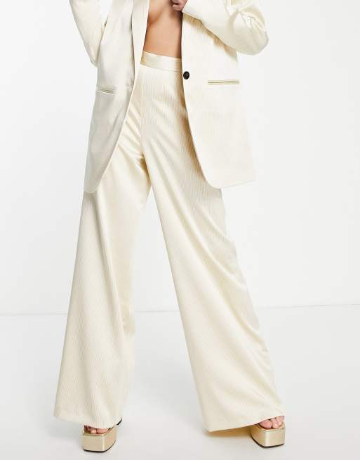 ASOS DESIGN pinstripe satin high waisted wide leg suit pants in cream
