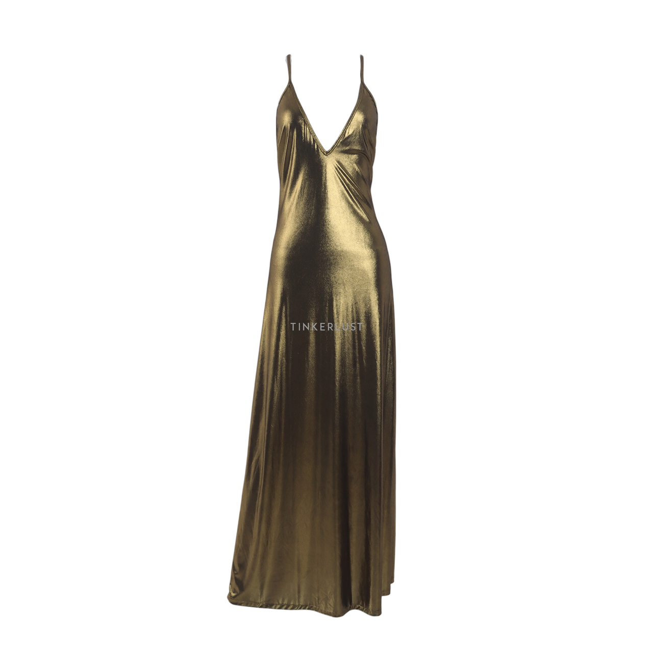 pakaian dress long dress American Apparel Gold Long Dress Tinkerlust