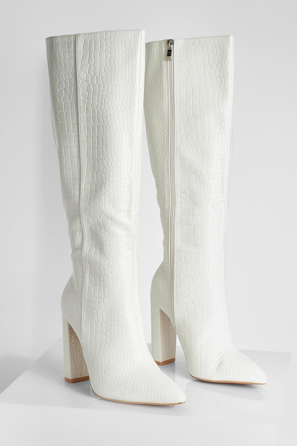 Wide Width Pointed Knee High Heeled Boots boohoo