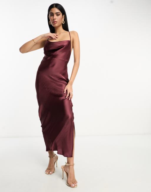 Wine lace maxi romper clearance, ASOS DESIGN Bridesmaid cami maxi slip dress in hi shine satin with clearance