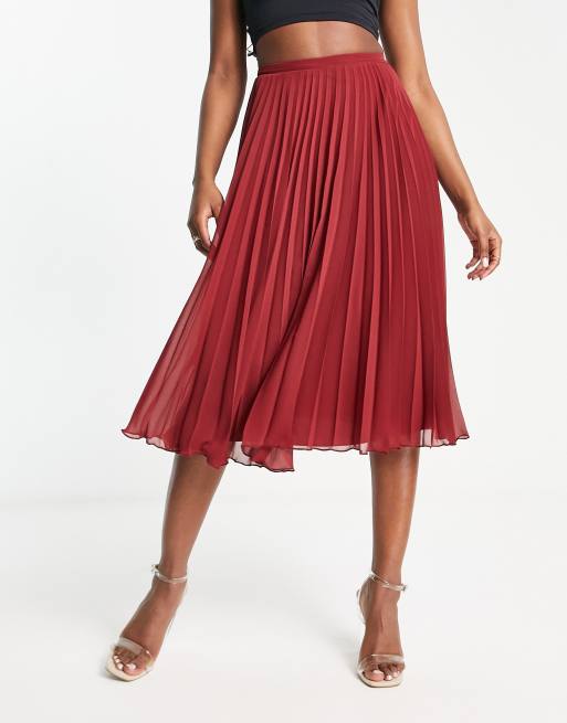 Stylish Fascination Wine Red Pleated Tiered Midi Skirt