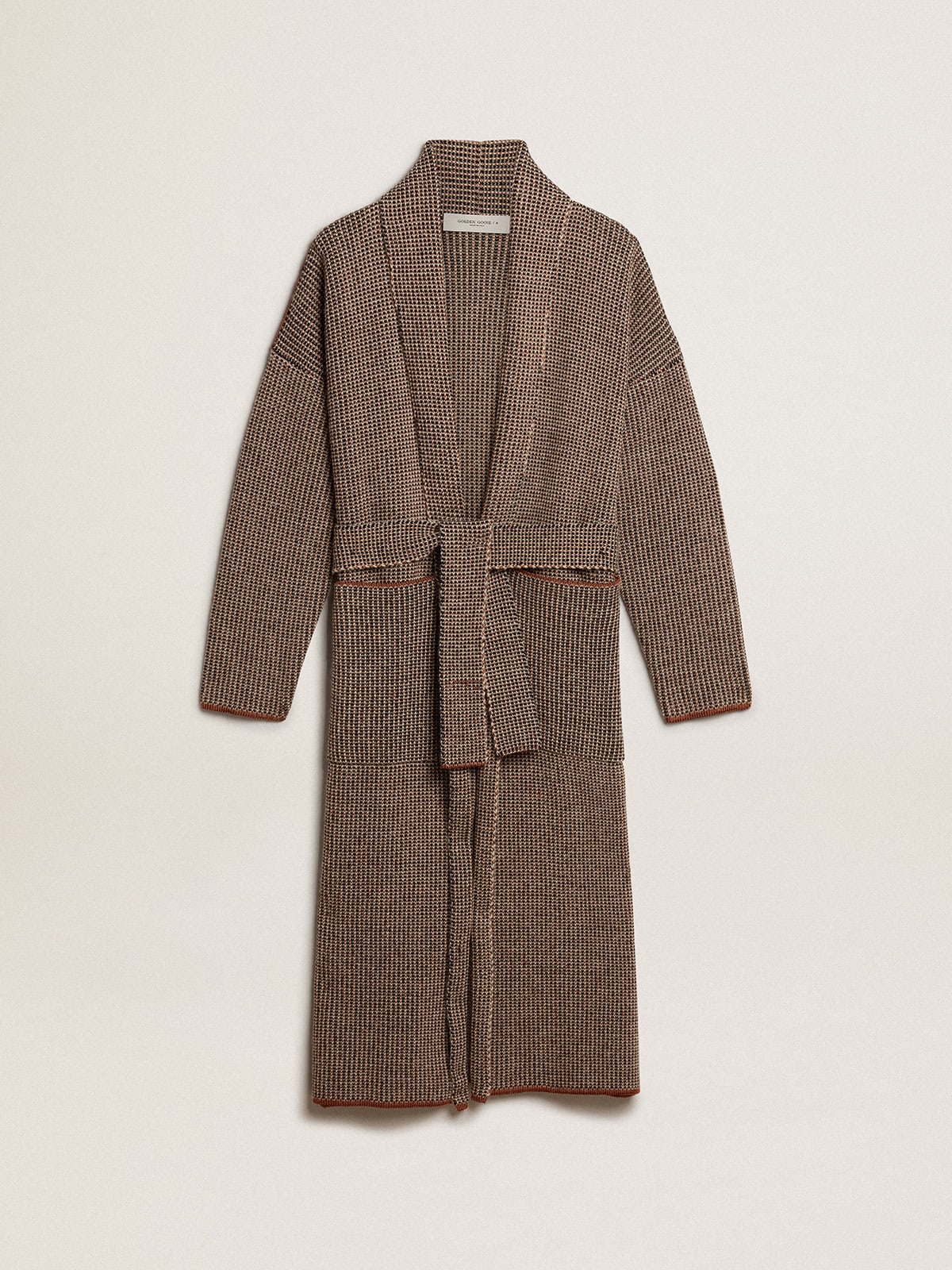 Ladies Long Knitted Cardigan Loose Casual Hooded Geometric Jacket