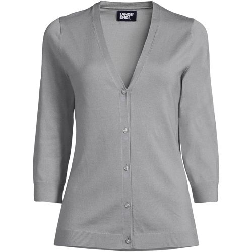 Women s 3 4 Sleeve Performance Fine Gauge V neck Button Front