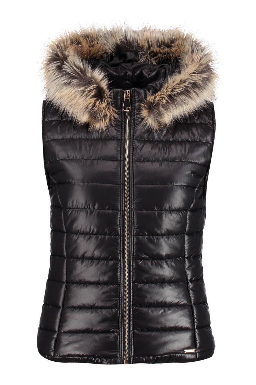 New Women Black Fur Hood Padded Gilet Body Warmer 8 10 12 14 16 18 20 22 24 26