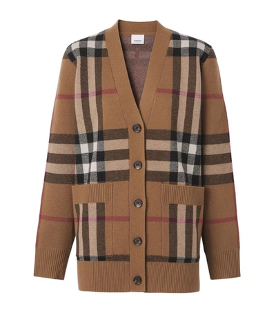 Burberry Checked Wool And Cashmere blend Cardigan In Birch Brown
