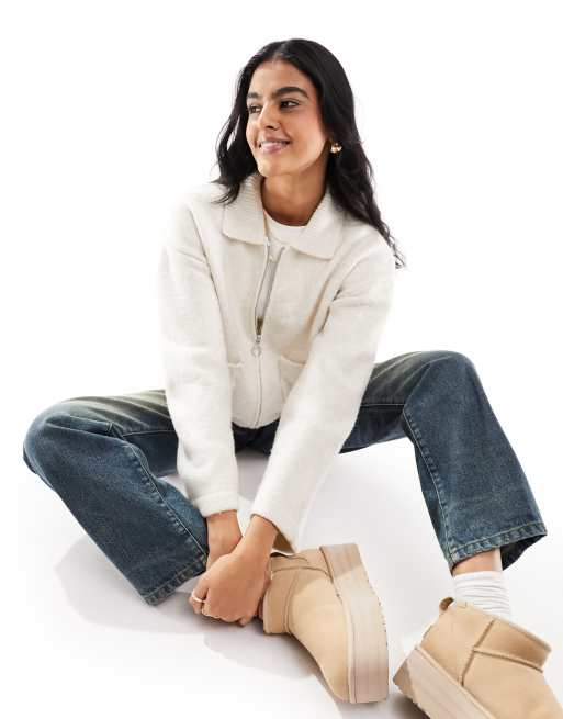 Women's cardigan with zip pockets clearance, Pieces zip up cardigan with pockets in cream ASOS clearance