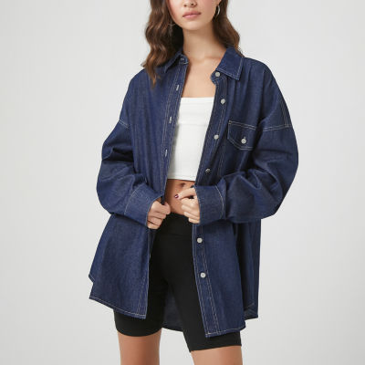 Womens denim shirt forever 21 clearance, Forever 21 Juniors Denim Womens Long Sleeve Oversized Button Down clearance