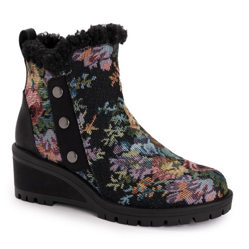 Muk Luks Women s Norway Halden Wedge Booties Black Multi 6.5