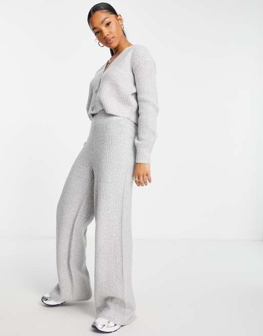 ASOS DESIGN co ord knitted wide leg pant in gray marl