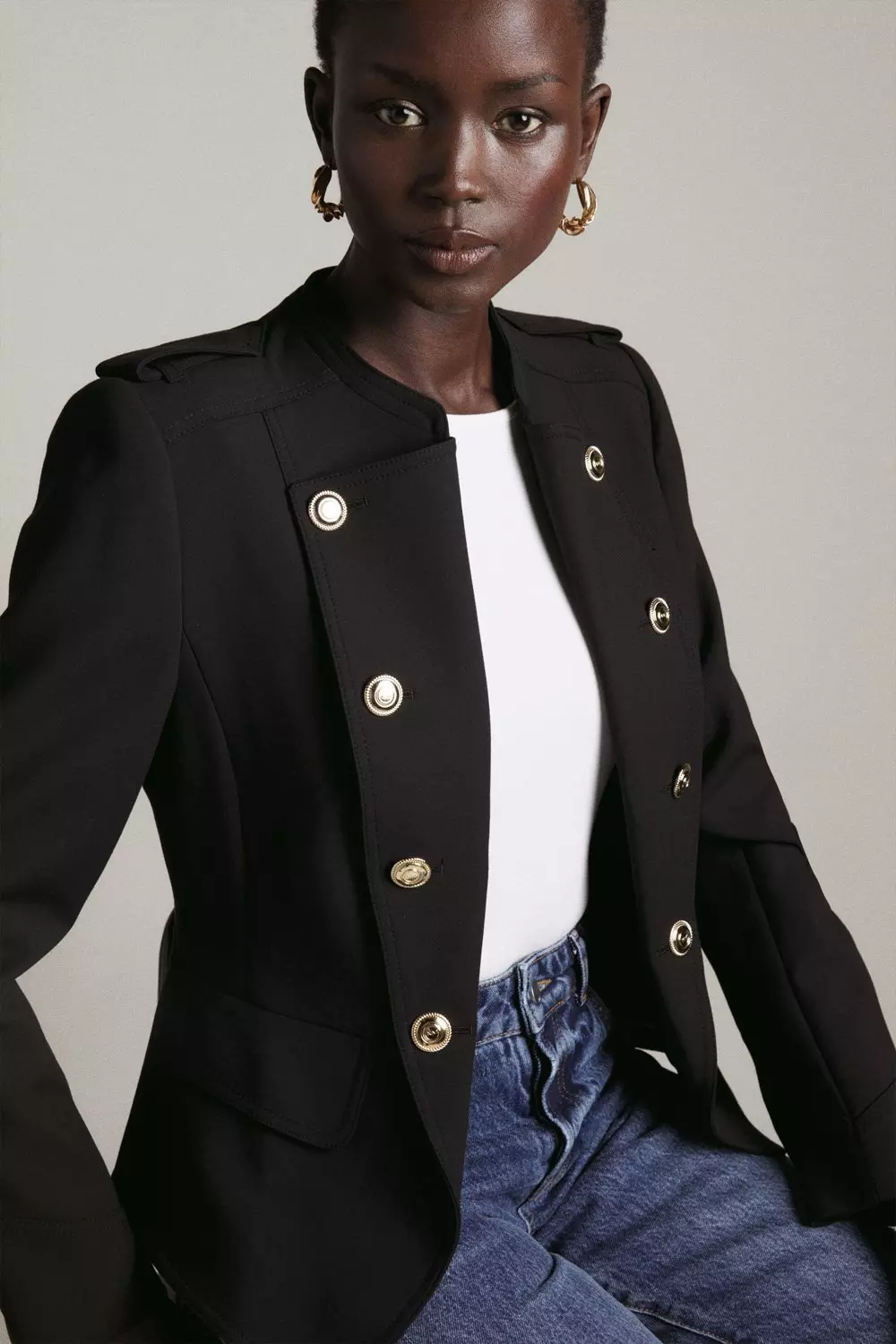 Petite Tailored Button Military Blazer Karen Millen