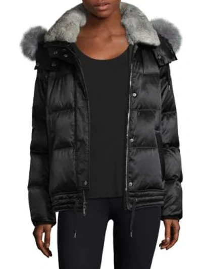 Andrew Marc Lillie Rabbit Fox Fur Trim Down Coat In Black ModeSens