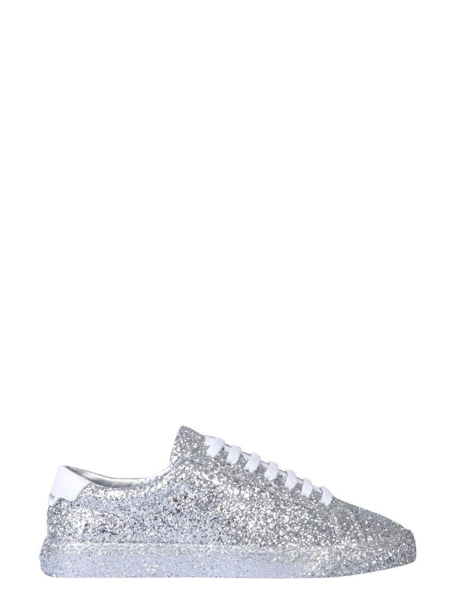 SAINT LAURENT ANDY LEATHER SNEAKERS IN CRYSTAL GLITTER