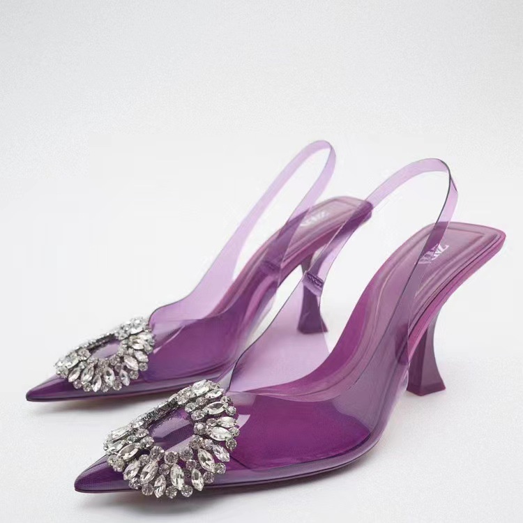 Zara Nuevo Estilo Tacones Altos P rpura Transparente Pegamento Puntiagudo Tac n Stiletto PVC Diamantes De Imitaci n