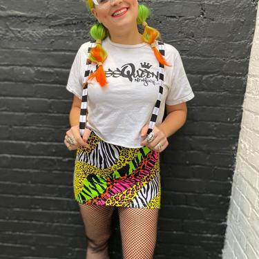 Neon Animal Print Suspender Skirt Costume Unisex Rave Mini Skirt