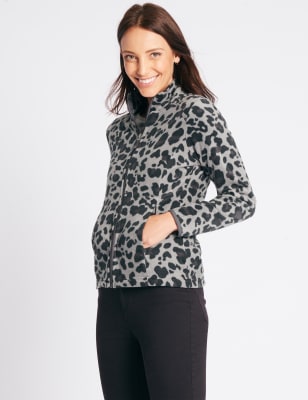 Animal Print Zip Through Teddy Fleece Jacket Bonmarch