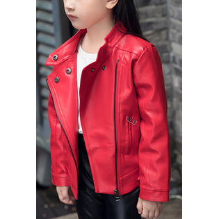 Zara Beez Kids Girls Stand Up Collar Oblique Zipper Solid Colored PU Leather Jacket