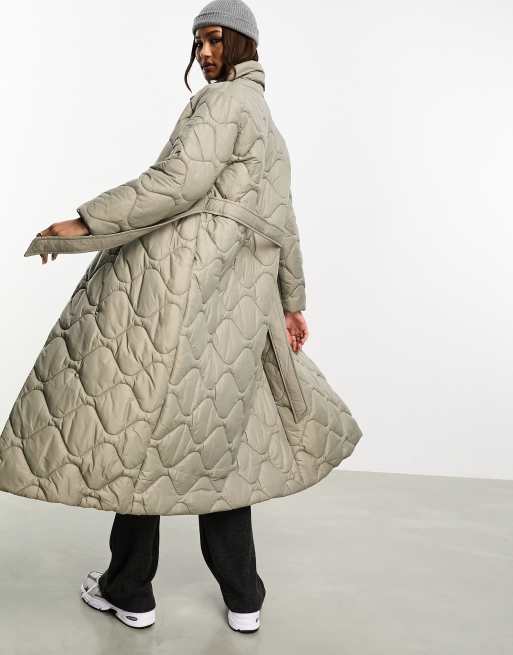 Vero Moda quilted high neck maxi puffer coat in stone