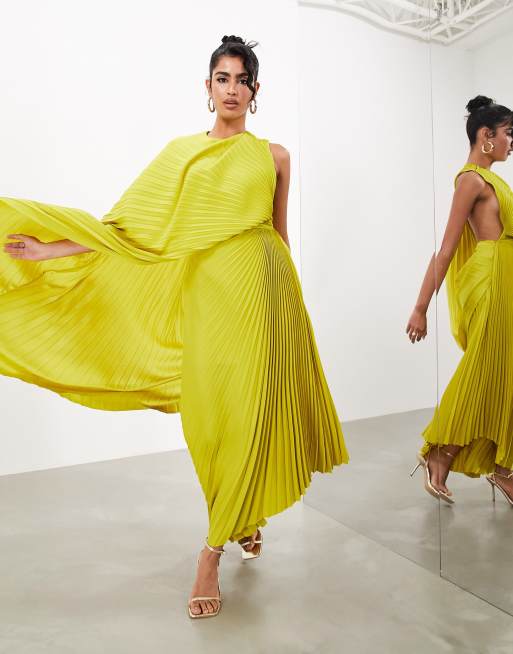 ASOS EDITION Robe pliss e longue et asym trique Chartreuse