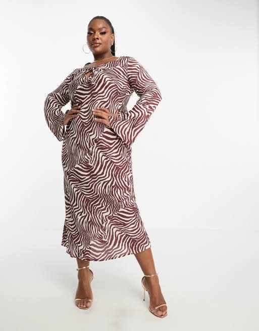ASOS DESIGN Curve tie front long sleeve midi dress in zebra print
