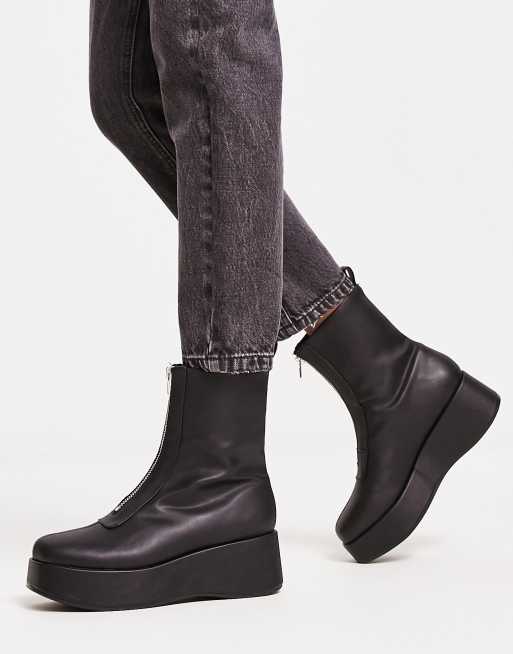 ASOS DESIGN Amsterdam chunky zip front ankle boots in black