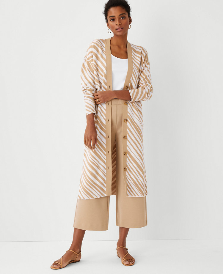 Ann Taylor Zebra Stripe V neck Maxi Cardigan In Mid Camel ModeSens