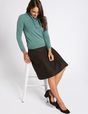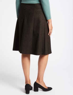 Wool Blend Herringbone A Line Midi Skirt Classic M S