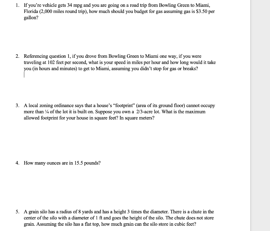 Solved 1. If you re vehicle gets 34mpg and you are going on