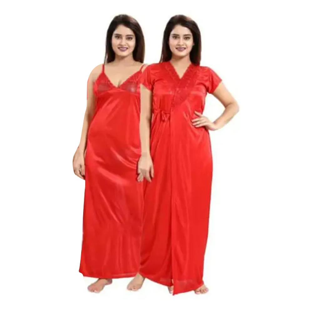 4 piece night dress clearance, Satin 4 Part Night Dress For Women Red ND 04 clearance
