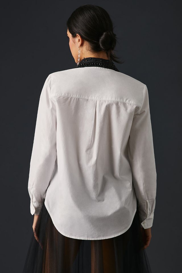 Anthropologie maeve blouse clearance, Maeve Anthropologie Ruffled Swing Shirt Blouse Top White clearance
