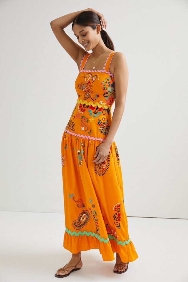 Maeve Sunset Embroidered Midi Dress