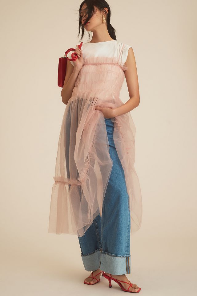 Anthropologie slip dress clearance, By Anthropologie Sheer Smocked Slip Dress clearance