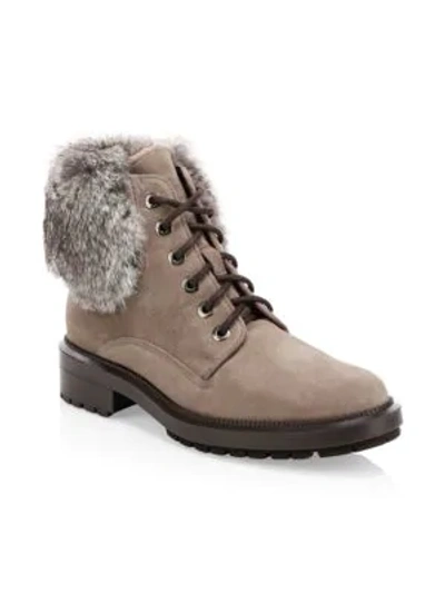 Aquatalia Lacy Suede Combat Boots w Fur Trim