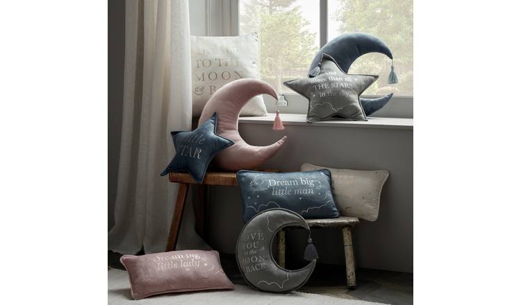 Buy Bambino Moon Star Velvet Cushion Grey 43x36cm Cushions