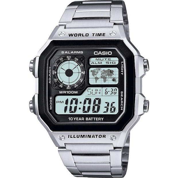 Argos casio mens digital watch clearance, Buy Casio Men s Silver Stainless Steel Bracelet Watch Men s watches Argos clearance
