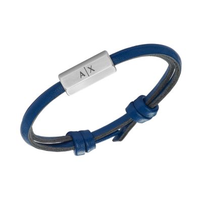 Armani Exchange Blue Leather ID Bracelet AXG0094040 Watch Station