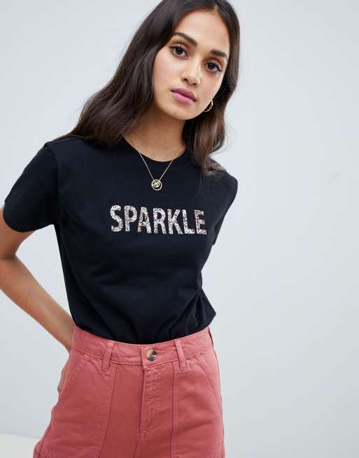 ASOS DESIGN t shirt with glitter sparkle slogan